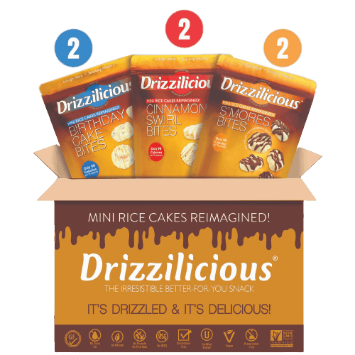 It’s Drizzled Deliciousness in a?fun filled variety of 4oz shareable?snack sizes!