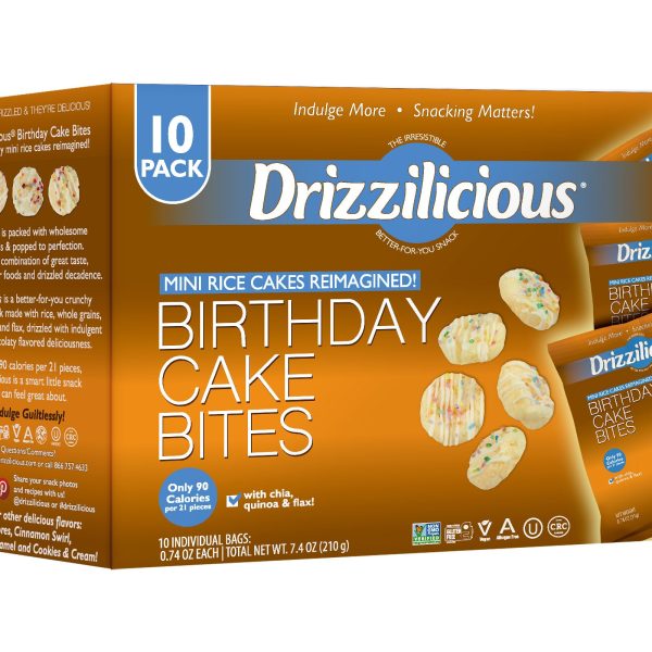 Our Drizzilicious?Birthday Cake?bites are the perfect?size for lunches or snacking for all- young or old! Each bite brings you?delicious birthday memories of sweet treats. fun. and smiles.