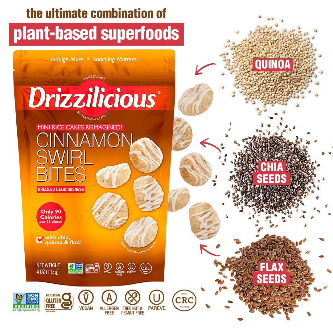 Our Drizzilicious Cinnamon Swirl bites are mini rice cakes reimagined!