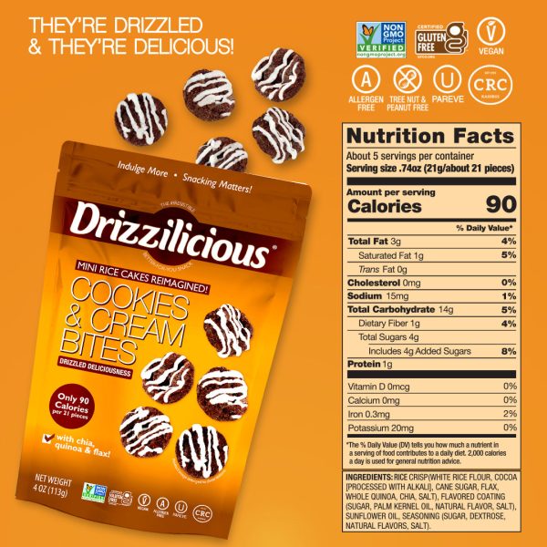 Our Drizzilicious?Cookies & Cream bites are mini rice cakes reimagined!