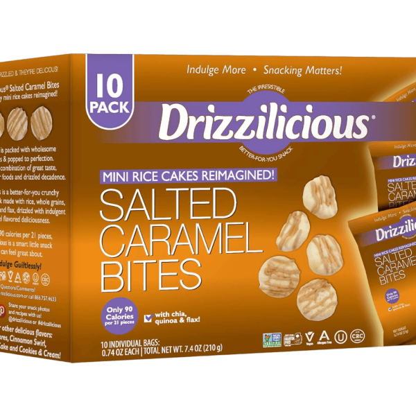 Our Drizzilicious Salted Caramel bites are mini rice cakes reimagined!