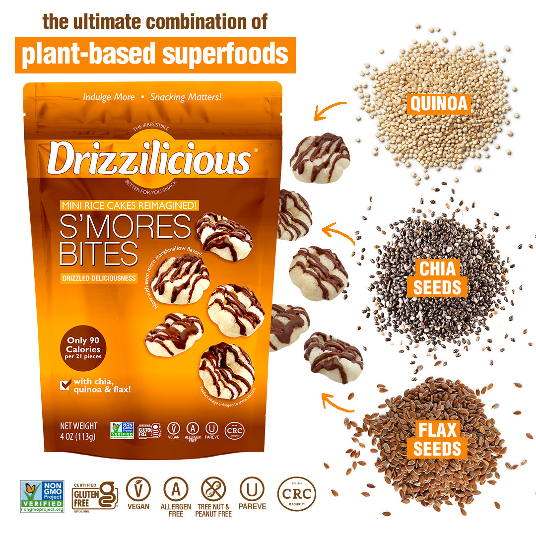 Our Drizzilicious?S’mores bites are mini rice cakes reimagined!